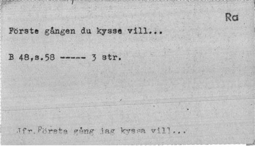//// Ra //// Förste gången du kysse vill... B 48,s.58 --- 3 3tr. //// .Tf-r Första gZmff X&a kyssa vill... ////