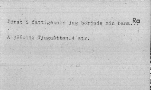 //// Ra //// Först i fattigekoln jag började min bana... A 326:1.15 Tjuguåttan.4- str. ////