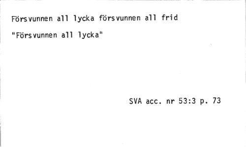//// Försvunnen all lycka försvunnen all frid "Försvunnen all lycka" //// SVA acc. nr 53:3 p. 73 ////