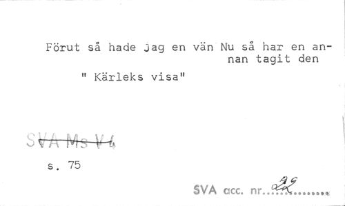 //// Förut så hade Jag en vän Nu så har en annan tagit den //// " Kärleks visa" //// S WrMs-iH //// s. 75 //// SVA ccc. nr...I.. ////