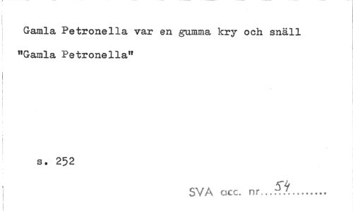 //// Gamla Petronella var en gumma kry och snäll "Gamla Petronella" //// s. 252 //// SVA acc. nr... ... ////