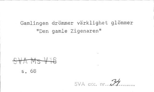 //// Gamlingen drömmer värklighet glömmer "Den gamle Zigenaren" //// s. 68 //// SVA ccc. nr...I.. ////
