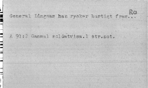 //// i General lån g nan? han rycker hurtigt fram.»» - A 91:2 Gammal scldatvisa. 1 str.not. ////