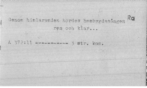 //// Ra //// . Genom himlarymden hördes hembygdssangen //// ren och klar... //// A 37?: 11---3 str. kor. ////