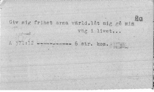 //// Giv mig frihet arrr;a värld,låt mig gå min^ ' . .. vag i livet... //// A ::7':i~2---6 str. kom. //// ¦' •*" Ti? ////