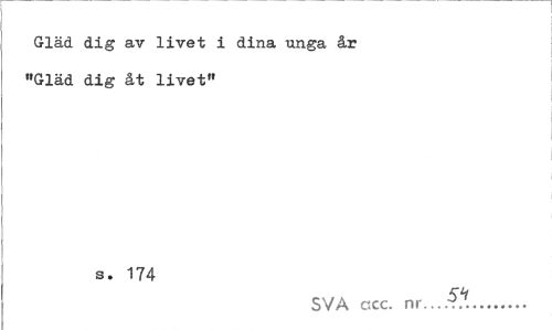 //// Gläd dig av livet i dina unga år »Gläd dig åt livet" //// s. 174 //// SVA ccc. nr.../.:£-.,..., ////