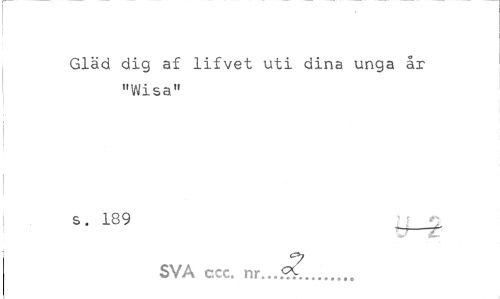 //// Gläd dig af lifvet uti dina unga år "Wisa" //// I s. 189 //// SVA ccc. nr...5??... ////