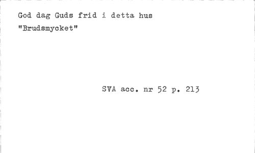 //// God dag Guds frid i detta hus "Brudsmycket" //// STA acc. nr 52 p. 213 ////