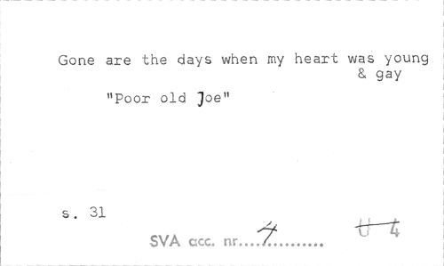 //// Gorte are the days when my heart was young //// & gay //// "Poor old Joe" //// s. 31 //// ^ iM; //// SVA ccc. nr.../... ////