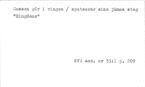 //// Gossen går i ringen / spatserar sina jämna steg "Ringdans" //// STA acc. nr 53:1 p. 209 ////