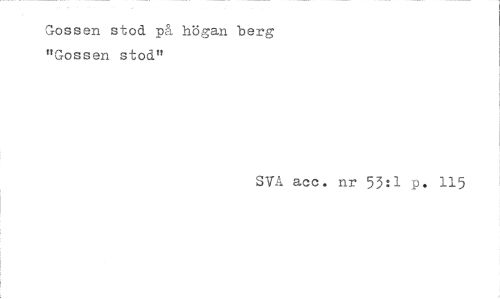 //// Gossen stod på, högan berg "Gossen stod" //// SVA acc. nr 55:1 p. 115 ////