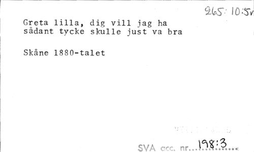 //// %S' 103» //// Greta lilla, dig vill jag ha sådant tycke skulle just va bra //// Skåne 1880-talet //// SVA rrrr nr.. ////