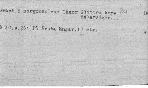 //// rrant 1 morgonsolens lågor Glittra Tcrya 1 u B //// Mälarvågor... //// 3 264 På Årsta ängar,12 str. B ////