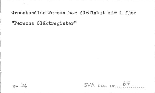 //// Grosshandlar Person har förälskat sig i f jor "Persons Släktregister" //// s. 24 SVA ccc. nr...fe?... ////