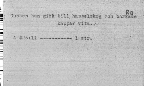 //// ¦ j Gubben han gick till hasselskog och barlale //// = käppar vita..'. //// ¦ //// ~ A 426:11---•---1 str. ////