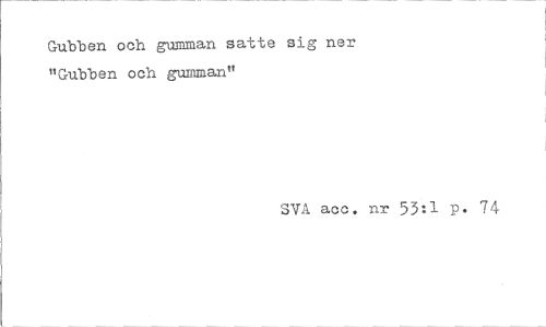 //// Gubben och gumman satte sig ner "Gubben och gumman" //// SVA acc. nr 53:1 p. 74 ////