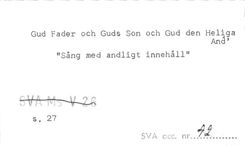 //// Gud Fader och Guds Son och Gud den Heliga //// An <3' //// "Sång med andligt innehåll" //// SVA M-HZ-^S //// s. 27 //// 43 //// SVA ccc. nr../.fr... ////