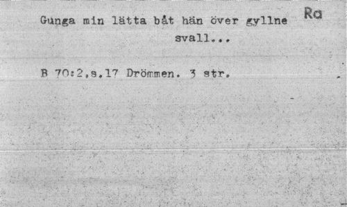 //// Ra //// Gunga min lätta båt hän över gyllne //// svall... //// B 70i2,3.17 Drömmen. 3 str. ////