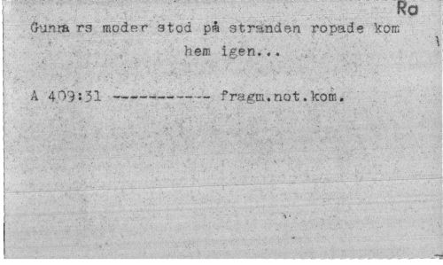 //// »Vi //// Gun ra rs moder stod på stranden, ropade kom //// hem igen... //// A 409:31 ---,— f ra gm. no t. kom. //// i < , ////