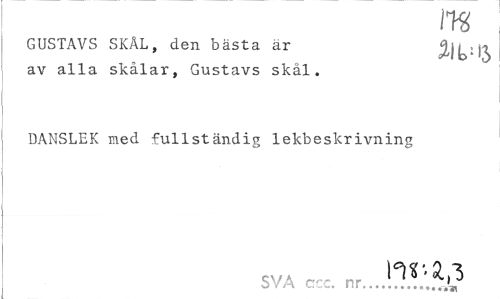 //// m //// GUSTAVS SKÄL, den bästa ar åib1^ //// av alla skålar, Gustavs skål. //// DANSLEK med fullständig lekbeskrivning //// SVA ccc. nr...;,v ////