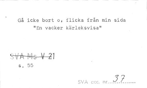 //// « //// Gå icke bort o, flicka från min sida "En vacker kärleksvisa" //// I //// s. 55 //// T ? //// SVÅ ccc. nr.. Y... ////