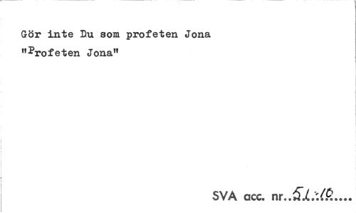 //// Gör inte D/u som profeten Jona "Profeten Jona" //// SVA acc. nr ////
