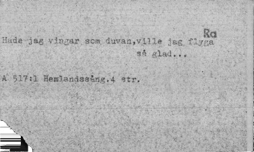 //// gg ;: //// Hade jag vindar. som. duvan,ville jag flyga //// ¦ s".å glad... , i 7 • //// A 517:1 Hemlandssång.4 str. ////