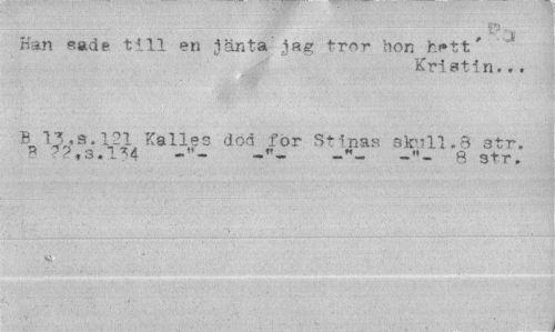 //// ' v-r "'I" ¦ //// Han sade till en jänta jag tror hon h**tt //// Kri ati n... //// B 13*3.121 Kalles dod for St?nas skull.8 atr. ? 72,3.134 -'*- -•«- s s+r. //// SI ////