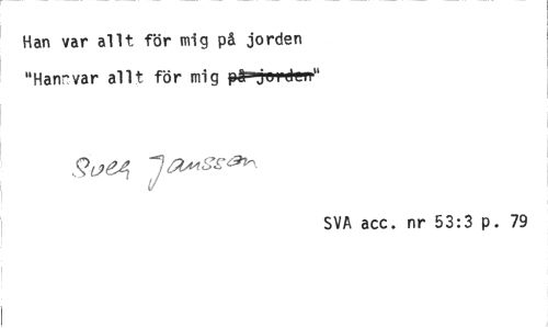//// Han var allt för mig på jorden "Hanrvar allt för mig //// SVA acc. nr 53:3 p. 79 ////