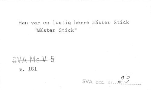 //// Han var en lustig herre mäster Stick "Mäster Stick" //// £V/\ Ms V-5 //// s. 181 //// SVA c c c. nr...^,... ////