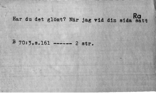 //// Ra //// Har du det glömt? När jag rid din sida satt B 70:3.8.161---2 str. ////