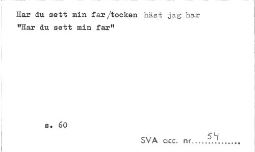 //// Har du sett min far/töcken häst jag har "Har du sett min far" //// s. 60 //// 54 //// SVA acc. nr... ////