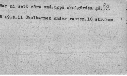 //// Ra //// lar ni sett våra små,uppå skolgårde» går... B 49,a.ll Skolbarnen under rasten.10 str.kom ////
