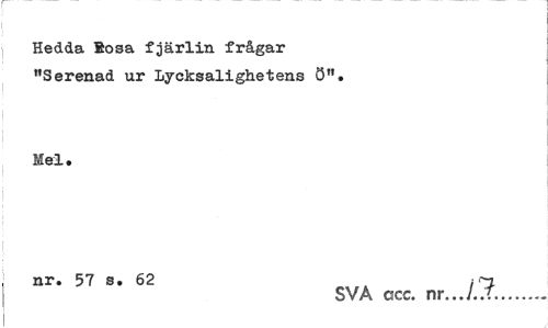 //// Hedda Sosa fjärlin frågar "Serenad ur Lycksalighetens ö". //// Mel. //// nr. 57 s. 62 i-n //// SVA ccc. nr.../..T... ////