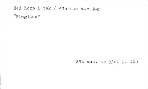 //// Hej hopp i tak / fästman har jag "Ringdans" //// SVA acc. nr 53? ?• ////