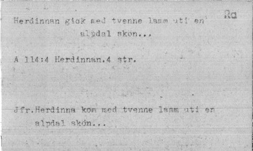 //// Kerdinnan gick n;ed tvenhe lan m >x15 en alpdal skön.,, //// A 11454 Herdinnan.4 str. //// Jfr.Herdinna kom med tvenne lamm uti er alpdal skon.,. ////