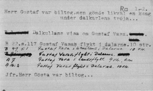 //// 1.-2. //// Herr Gustaf var biltog.men gömd® likväl en kung //// under dalkarlens tröja... //// dalkullans v? sa om Gustaf B ''^.s.117 Gustaf Vasas flykt i dalarne. 10 str. //// ty /b; X PusS-ay Tu Sa. p foäs 7J 211 {(trna. /a //// Jfr.Herr Gösta var biltog... ////