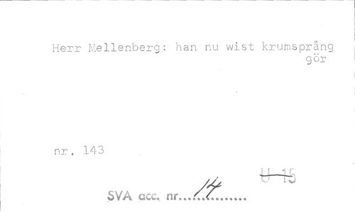 //// Herr Mellenberg: han nu wist krumsprång //// gör //// nr . 14: //// SVA qcc. nr...<.<„... ////