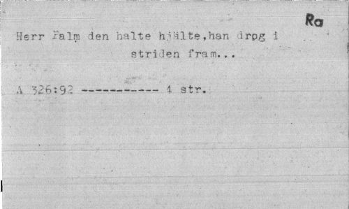 //// Ro //// Herr lalrn den halte hjälte,han drpg i //// striden fram... //// A 326:92---4- str. ////