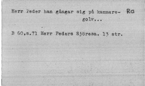 //// Herr Peder han gångar sig på kammare- R& //// golv... //// B 60,s.71 Herr Peders Sjöresa. 13 str. //// ! • ' .'I . ////