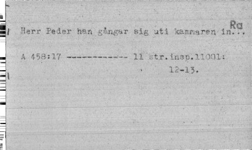 //// ml Herr Peder han -gångar sig uti 'kammaren- in..» //// . A 458:17 ---11 Btr.inSD.11001: //// l ' 12-13. ////
