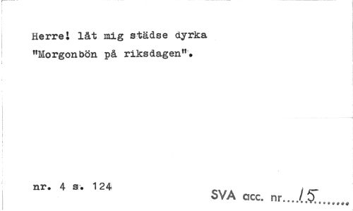//// Herrei låt mig städse dyrka "Morgonbön på riksdagen". //// nr. 4 s. 124 //// SVA ccc. nr... / 5 ////