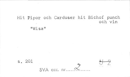 //// Hit Pipor och Carduser hit Bichof punch //// och vin //// "Wisa" //// s. 201 ff-9 SVA ccc. nr...9S-... ////