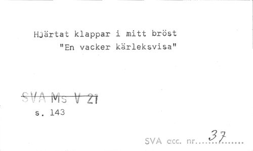 //// Hjärtat klappar i mitt bröst "En vacker kärleksvisa" //// X Mb V Z\ //// s. 143 //// SVA ccc. nr. ... ////