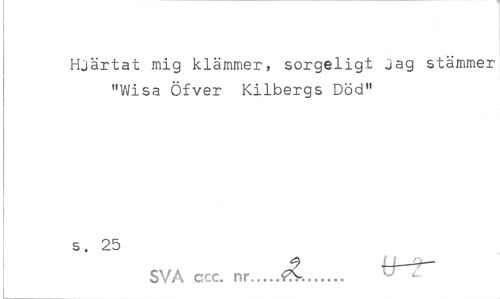//// Hjärtat mig klämmer, sorgeligt jag stämmer "Wisa Öfver Kilbergs Död" //// s. 25 //// SVA ccc. nr... u ' ////