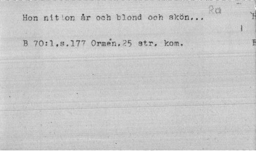 //// Hem nit!ok ar och blond och skön... J //// 1 //// B 70:1,s.177 Ormen,?5 str, kom, 1 ////