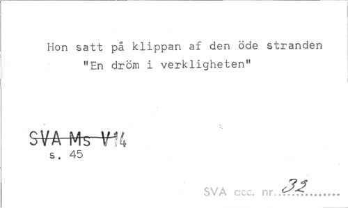 //// Hon satt på klippan af den öde stranden "En drö/n i verkligheten" //// m-Ms-^4 //// s. 45 //// SVA c:c... ////