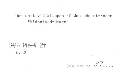 //// Hon satt vid klippan af den öde stranden "Midnattsdrömmen" //// s. 20 //// SVA ccc. nr...^.7... ////