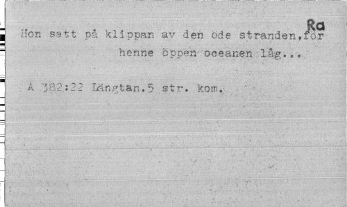 //// Ra //// Hon satt på klippar, av den ode stranden,for ¦ henne öppen oceanen lag... //// A .3 ¦ :22 Lan•rtan.5 .str. korr>. ////
