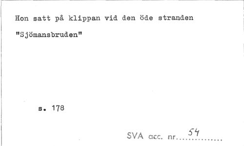//// Hon satt på klippan vid den öde stranden "3 j ömans brud en" //// s. 178 //// SVA cscc. nr...,5.^... ////